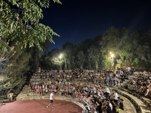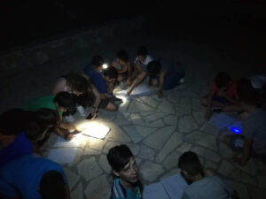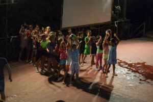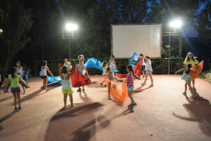 Όλες οι βραδιές όπου τα παιδιά διαμένουν στην κατασκήνωση έχουν ένα διαφορετικό βραδινό πρόγραμμα. Βραδινά παιχνίδια δράσης, ομαδικοί διαγωνισμοί, διαγωνισμοί τραγουδιού και χορού, τουρνουά μεταξύ των κατασκηνωτών, Κινηματογραφικές βραδιές, «κυνήγι χαμένου θησαυρού» και πολλά άλλα. Κάθε βράδυ όμως έχει ένα κοινό χαρακτηριστικό : Οι πρωταγωνιστές είναι τα ίδια τα παιδιά.